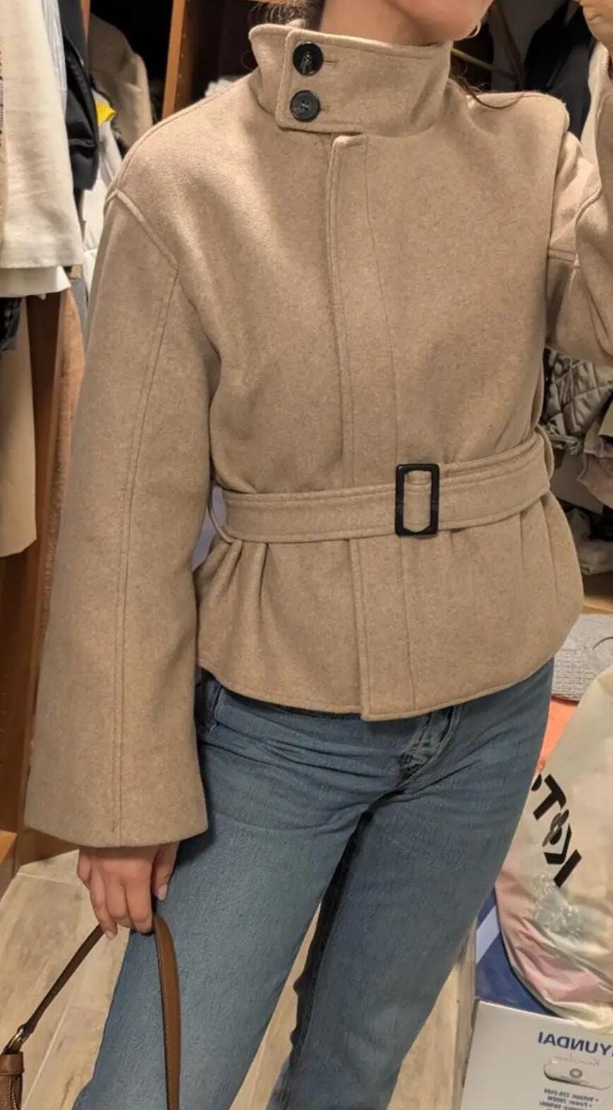 Details: Ceintuur, staande kraag