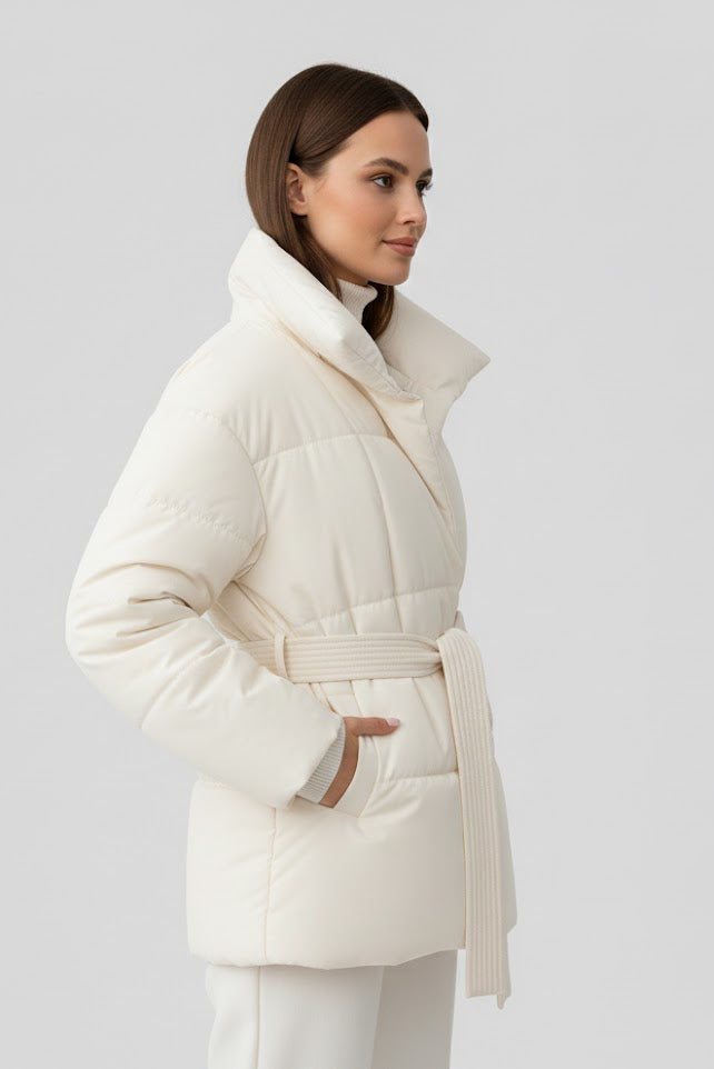 De Isabelle is een elegante winterjas met capuchon-achtige kraag en ceintuur op taillehoogte. Deze jas combineert warmte en verfijning met een H-lijn silhouet, perfect voor de vrouw die waarde hecht aan tijdloze elegantie en functionaliteit tijdens de koude wintermaanden.