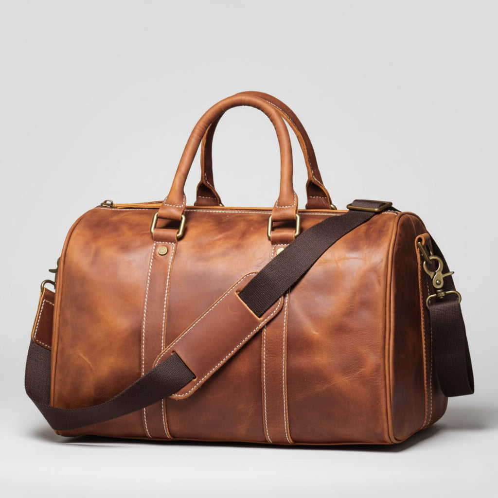 Maak kennis met de Voyager - een stoere en luxe leren reistas gemaakt van hoogwaardig rundleer. Deze krachtige tas combineert retro stijl met moderne functionaliteit, perfect voor de moderne man die houdt van reizen, kwaliteit en een tijdloze uitstraling.